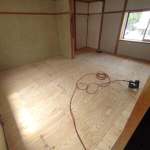 現在の工事工程:2階②16帖部屋床下地施工を行いました。