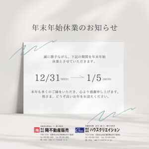 なお、年明けの営業開始日は1月6日(火) からとなります。