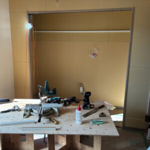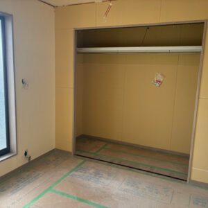 現在の工事工程:和室から洋室への改修工事として、壁・天井のボード貼りを行いました。