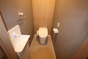 水まわり設備については、キッチン・浴室・洗面台・トイレをすべて新しい設備に入れ替え、洗面室およびトイレのクッションフロア(CF)も新調しました。さらに給湯器の交換を行い、快適性にも配慮した仕様となっています。